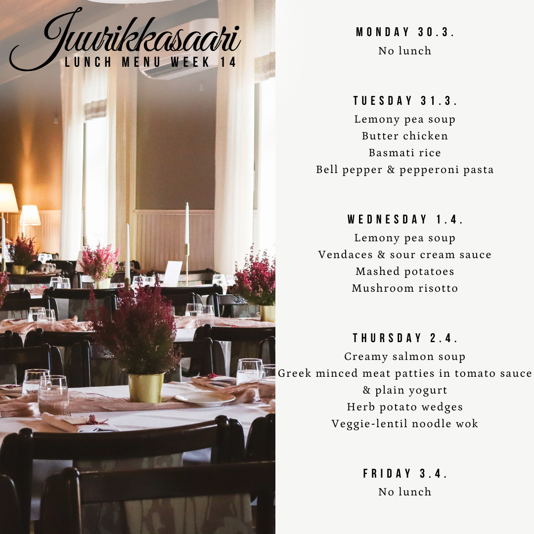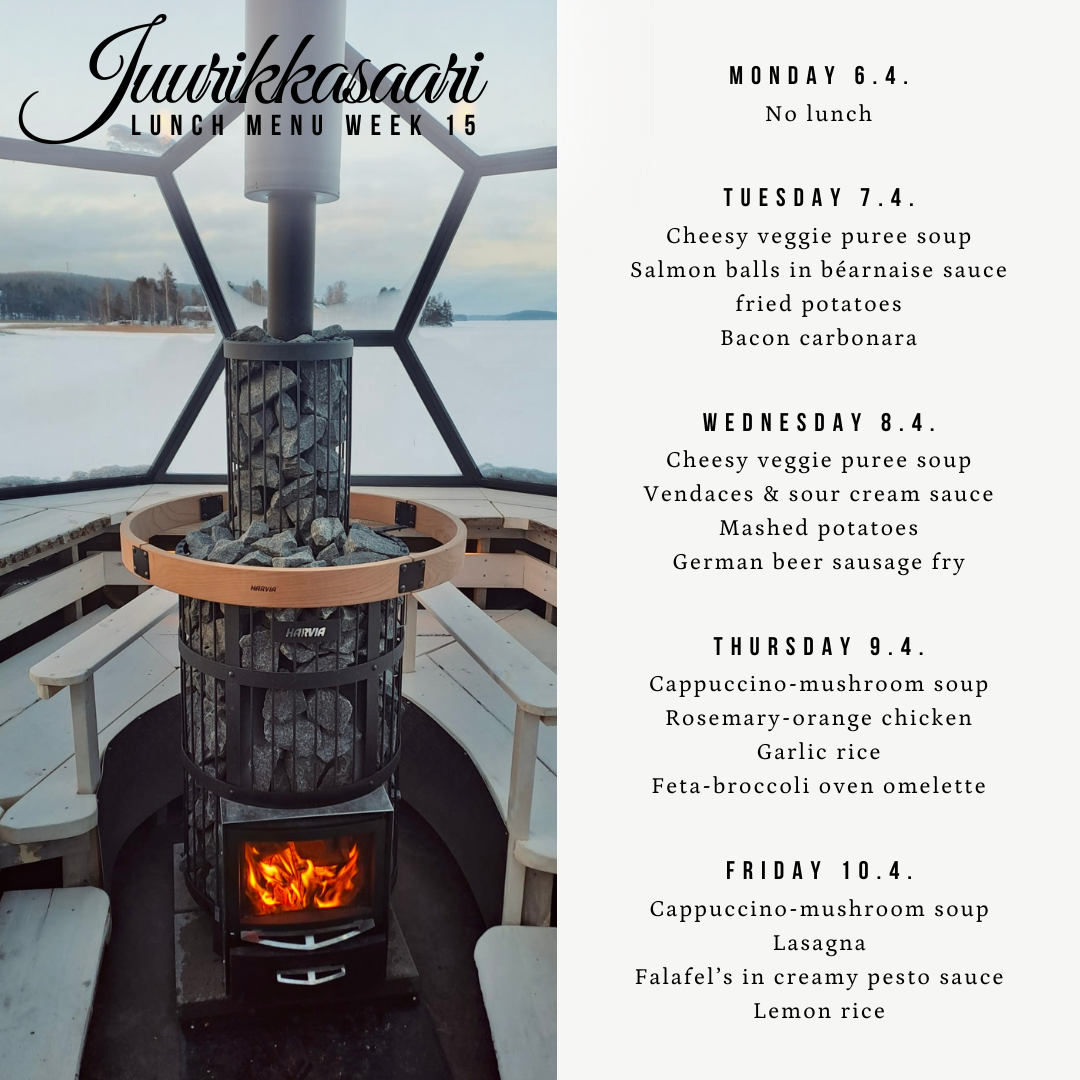 From January to February Juurikkasaari is closed on Mondays so there’s no lunch available then unless agreed otherwise.