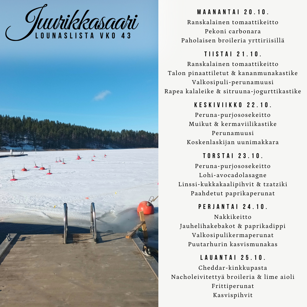 Herkullinen kotilounas on tarjolla ympäri vuoden ajan!
